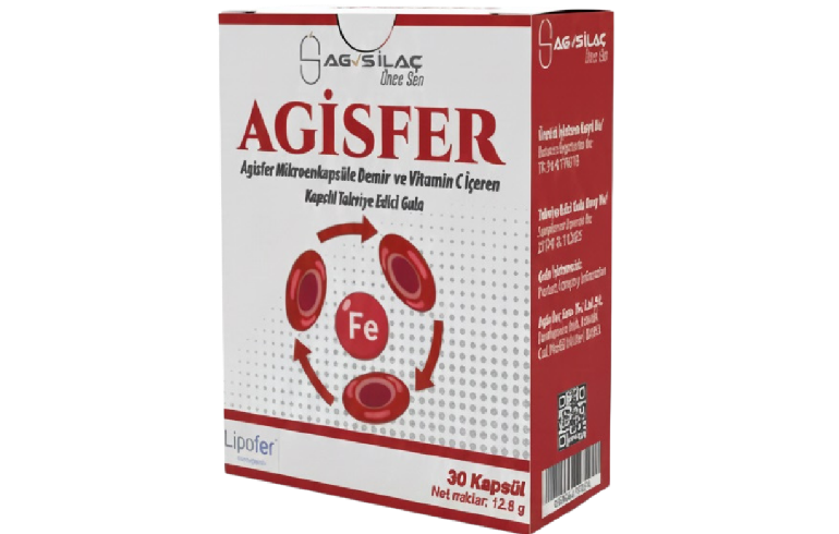 Agisfer, mikroenkapsüle demir ve vitamin C içeriği ile normal beslenmeye ek olarak demir alımını desteklemek amacıyla geliştirilmiş bir takviye edici gıdadır.